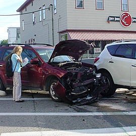 Two vehicles collided at about 7:50 a.m. Thursday at Sabattus, Bartlett and Oak streets. Ricky Hammond says he was on his apartment porch near the corner when he heard the “crunch.”