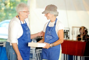 Margery Mars, left, of North Monmouth and Christine Rattey of Brunswick chat over a box of Greek pastries during the Lewiston-Auburn Greek Festival in Lewiston on Thursday. Music, food, dancing and a Greek market will continue through Saturday at the Holy Trinity Greek Orthodox Church on Hogan Road.