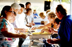 Volunteers serve dinner during the Lewiston-Auburn Greek Festival in Lewiston on Thursday. Souvlaki, moussaka, spanakopita, gyros and baklava are some of the specialties available during the three-day festival that continues through Saturday at the Holy Trinity Greek Orthodox Church on Hogan Road.