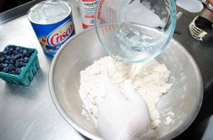 “The best tool is a hand pastry blender,” says Twitchell. “The curved knives cut the Crisco evenly and quickly, keeping it cold. When it resembles bread crumbs you are ready to add the water.”