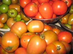 My disease-resistant tomato plants are surpassing my expectations. Every day I pick a basketful of ripening fruit and bring them inside to finish turning completely red. When I have what I estimate is enough for two batches, or 16 jars, I can them.