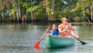 Bryson Mills, 5, of Sabattus watches an Osprey fly overhead as he and his father, Jeremy, paddle around Sabattus Pond on Sunday afternoon. They gave up on fishing after not having any luck. “I grew up fishing here and we would catch bass, perch and catfish all day long, but I guess the pike have wiped most of them out. Maybee we’ll get lucky and land one of those.” Mills said.