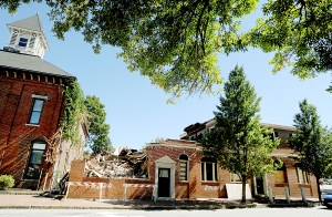 Roland Chabot of Chabot Demolition in Auburn said the building should be down by Saturday, and crews will return Monday to begin hauling away the remains.