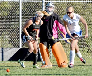 LITCHFIELD — If there was any doubt in anyone’s mind where the balance of power in MVC field hockey lies this season, the Oak Hill Raiders put that to rest unequivocally Friday. The Raiders turned a nail-biting, one-goal halftime advantage into a comfortable, sigh-of-relief-inducing four-goal margin with three flicks of Kylee Veilleux’s wrists in a 1:42 span of the second half, running off with a 4-0 win over the visiting Greyhounds at Carrie Ricker Middle School.