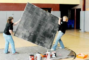 Deb Decker, left, and Kelly Cooper, both of Turner, move a panel they painted during the 13th annual United Way Day of Caring at the Boys & Girls Club of Southern Maine — Auburn/Lewiston Clubhouse in Auburn on Friday. Decker and Cooper are two of the nine employees from Mechanics Savings Bank who helped get the clubhouse ready for their annual haunted house on Oct. 25. “The kids had a three-page laundry list of work for them to do,” club Director Andie Hannon said. “We had 270 volunteers from 23 companies spread across the community,” Larry Marcoux, director of community impact for United Way, said. “The largest we have ever had by far,” Marcoux said. The United Way 2014 campaign goal was announced during Friday’s campaign kickoff breakfast, Marcoux said. The goal is to raise $1.5 million.