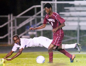 Edward Little forward Maslah Hassan returned to the soccer field last Thursday to play against his former team. Hassan played for Lewiston as a sophomore and was part of the club that reached the Eastern A final last fall and lost to Hampden.
