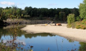 Farmington Public Works employees get sand for winter roads Tuesday from a sandbar on the Sandy River in Farmington Falls. The Whittier Road bank erosion project, on the left side of the river, worked out better than expected, especially in light of heavy rains and high river water this spring and summer, Public Works Director Denis Castonguay said.