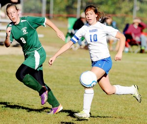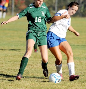 Oak Hill had some chances late in the half. Brittany Marquis had a shot deflected wide and Nadeau had a bid off a loose ball go wide. Carrabec threatened to end the half when Liberty Chestnut hit the crossbar on a free kick.