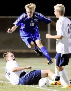 Michaud’s brilliant solo effort down the right side led to a centering pass that caught Falmouth goalkeeper Jesse Melchiskey leaning. Ben Campbell’s blast veered just wide of the open left post.