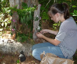 Twelve students in grades five through eight from The Eddy School in Newry put their imaginations and nature construction skills to work early Friday afternoon. They built a fairy home village in a stand of mixed hardwoods and white pine near the Mahoousuc Land Trust office off Route 2.