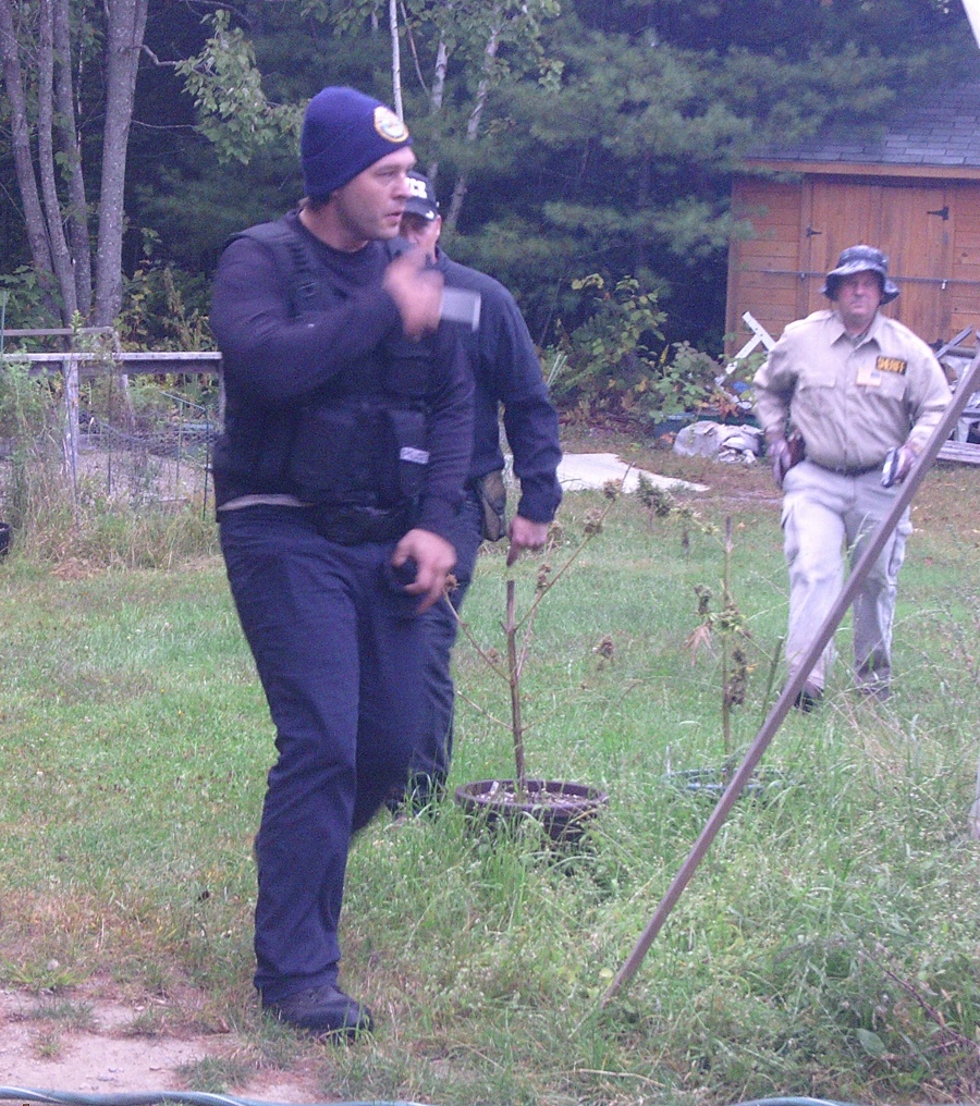 “The trio entered the property wearing clothing impersonating law enforcement personnel,” Stephen McCausland, spokesman for the Maine Department of Public Safety, said in a press release. “The clothing, which is easily obtainable online, depicts a ‘SWAT’ style vest and a shirt that states ‘Sheriff’ on the front. One of the men was armed with what is believed to be a semi-automatic handgun.