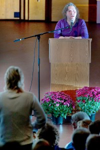 Standing at the lectern Wednesday night, she cracked more than a few jokes while telling her powerful story. Those in the audience, nearly 100 strong, found themselves laughing, wincing, grimacing and grinning.