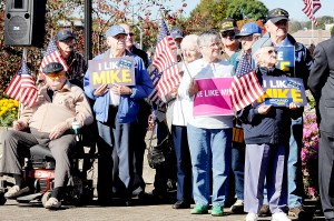 Principi, who is a decorated Vietnam War combat veteran and Naval Academy graduate, said efforts to improve the lot of U.S. veterans need to be bipartisan. Approximately 30 veterans from the Lewiston-Auburn area joined in the news conference Monday, chanting, “Vets like Mike” and cheering alternately for Michaud.