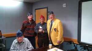 The Dixfield American Legion recognizes Silas Parlin, back middle, with a plaque on Sunday for his assistance with the 40 and 8 Society, an independent honor organization for U.S. male and female veterans. Also shown are Leland Merchant, front, Clinton Delano, back left, and Gene Bickford.