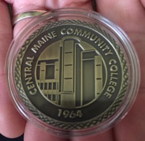 A collectible coin shows the new seal of Central Maine Community College in Auburn. It features an image of the school’s planned academic building, which is scheduled to open next fall.