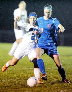 Messalonskee’s Dakota Bragg had the best scoring chance in the early going, but missed the net aiming for the far post when Lewiston goalkeeper Kelsey St. Cyr came out of her net to play a loose ball.