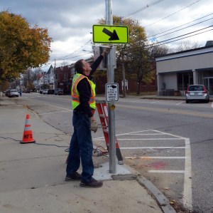 According to information from the DOT, the Rectangular Rapid Flashing Beacons are solar-powered flashing lights that they claim drastically improve motor vehicle-compliance rates of stopping for pedestrians in crosswalks at unsignalized locations.