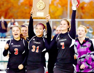 “We lost to them 4-0 the first game of the season, didn’t play very well, kind of intimidated by them,” Lisbon coach Julie Petrie said. “Second game it was 2-0, had a couple of … goals go in. Conference championship, we went in just with the goal to score a goal, because we had been shutout for a long time. Once we got that first one, we knew we could do it.”