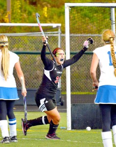 It was Oak Hill that struck first. After weathering an early Lisbon surge, the Raiders controlled the second part of the first half. They carried that momentum into the second half. Kylee Veilleux redirected a blast from the top of the circle by Hayley Marshall past keeper Victoria Swan with 24:26 remaining to put the top seed in front 1-0.