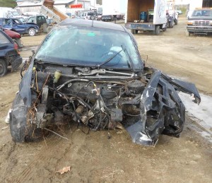 The force of the impact ripped the engine free from the car and demolished the front end.