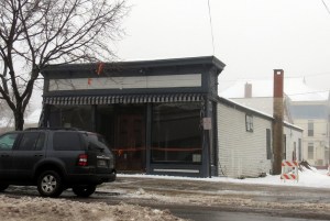 Construction barrels have been placed in an alley beside the building because officials fear the chimney could collapse at any time. The store’s pitched metal roof was built about 10 years ago over the original flat, wooden roof, which collapsed under heavy snow in March 2013. The collapse uncovered years of rot, mold and other structural problems.