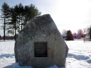 FARMINGTON — The Bjorn Park at 144 High St. was dedicated Saturday with the unveiling of a bronze plaque set in a large stone to commemorate the property’s history and honor the couple who financed the park.