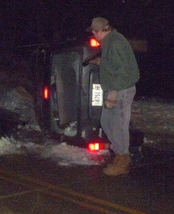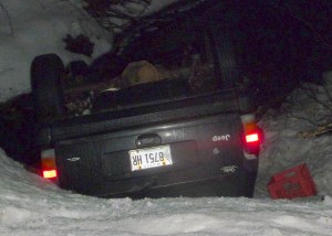 Neither Skidgell nor Trooper Barton knew who called Franklin County Dispatch in Farmington to advise them of the accident, but Skidgell said there was so much snow in the road, any passerby would likely have stopped to check and seen the Jeep upsidedown in the brook.