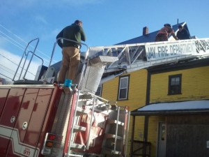 Gulliver called the Jay Fire & Rescue Department, which brought a ladder truck. Firefighter Blaine Rackliff said the ladder was raised to the balcony and Lt. Max Couture climbed up to help the woman get down. Rackliff, along with Lt. Rick Duguay and firefighter Darren Roundy, assisted at the scene.