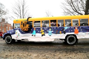 Leading the parade this year was Chester Greenwood (portrayed by Farmington resident Clyde Ross), Town Manager Richard Davis, Mark Gentle singer, and Megan McCarthy, author of a new children’s book about the famous inventor, all riding the Chamber of Commerce float provided by Rob Elliot Trucking.