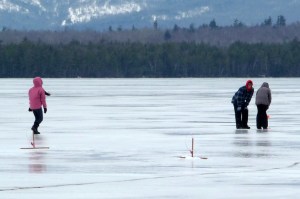 “Any bit of wind messes you up,” he said. “We had some years on Sebago where it was cold enough to make ice but the wind won’t stop, so it’s all gone.”