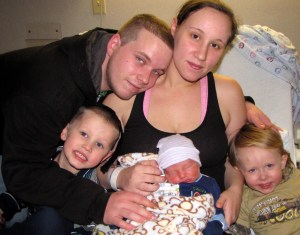 “He’s our third boy, and we’re happy to have him,” father John Oberton said as mother Kimberly Bellanceau held the sleeping bundle on Friday.