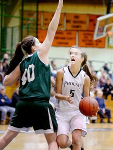 Spruce Mountain hit five of its first seven shots in the first quarter and four of its first five in the second. When the Phoenix had to settle into the half-court, Spruce Mountain had some nice teamwork and ball movement. Some of the shots didn’t fall, but some good chances were created.