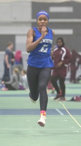 She won the triple jump with a leap of 34-02. She admitted that the facility at Colby wasn’t exactly her favorite. She thought it might effect her performance, but it didn’t seem to phase her or her teammates.
