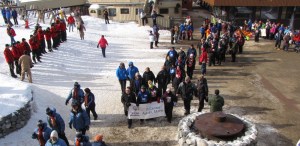 Other snowshoers waited for Michael Baribeau of Brunswick to lower the red flag and they were off.