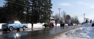 The three vehicles were traveling to Farmington on Route 2, also known as Farmington Falls Road. Lawrence Parker, 46, of New Sharon stopped his 1995 Ford pickup to make a left turn into the Twitchell Fuel lot, north of the office, Tanner said.