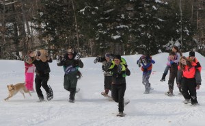 “These are just fun games to everyone in the family out on snowshoes and having a blast. … The pulk are those little plastic sleds … usually the parent will be pulling one or two of their kids so it’s a speed race,” she said. “But it’s fun because the kids are falling out and the parents are getting involved.”