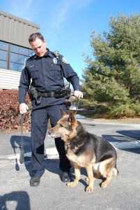 Sultan became Stephenson’s pet after the dog retired from active police duty, although they also worked together. Sultan’s original handler and owner, former Yarmouth police Officer Michael Vogel, is now working in Florida; his son attended Friday’s ceremony.