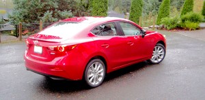 The design carries over to the interior where our test 2015 Mazda3 S four-door Grand Touring sedan had the look of something more expensive and higher up the automotive pecking order. The materials are high quality, with soft touch surfaces. We loved the dramatic interior lines and the highly bolstered perforated leather seats. The seats are comfortable and hold the front seat passengers tightly in place during more exuberant driving. The rear seat space is larger now, and comfortably holds 2.5-six footers. Like most cars, the center position of the rear seat is tight but at least the surface is flat. At 12.1 cubic feet the Mazda3 cargo space is on the lower side of average for the category. Shoppers looking for more cargo carrying capacity should look at the Mazda3 five-door hatchback; it’s actually our favorite of the two.