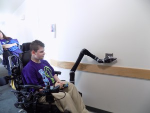 JAY — Spruce Mountain High School freshman Bryan Riley of Jay, who was born with Duchenne Muscular Dystrophy, hasn’t been able to walk for several years. On Thursday, Bryan had a chance to test the prototype for the JACO2 assistive robotic arm.