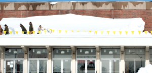 Workers chip away at snow “monolith” on roof of EL