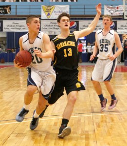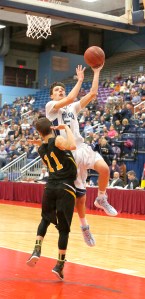 The Cougars held sophomore Kyle Wilbur, whose 3-point marksmanship helped eliminate MVC representatives St. Dom’s, Boothbay and Winthrop from the tourney, to one 3-pointer. It came in the fourth quarter.