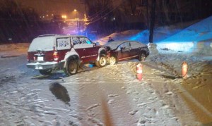 Auburn police and rescuers responded to a head-on collision at the intersection of Court and Lake streets just after 9 p.m. Saturday. Court Street was closed between Granite and Goff streets while firefighters worked to clean up the accident involving an SUV and a sedan. Firefighters at the scene said a 61-year-old woman, a passenger in the sedan, complained of back pain and was taken by ambulance.
