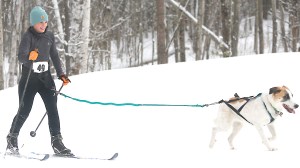 At Roberts Farm Preserve on Sunday morning, skijoring, the Norwegian word for ‘ski driving,’ saw seven teams race a three-mile course through groomed snowy trails, up hills and down ravines.