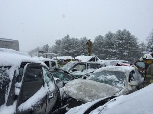 Emergency personnel climbed on top of cars to reach motorists stuck in the middle of the jumble of vehicles. McCausland said one veteran trooper described the site as a “giant pile of metal.”