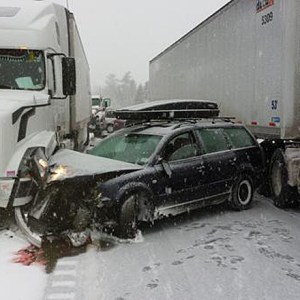 Rhonda Kent, an occupational therapist from Saint Albans, said her car was sideswiped amid the pileup, which sent cars and trucks spinning. Kent, who was not injured, said a logging truck came dangerously close to hitting her and spun off into a ditch.