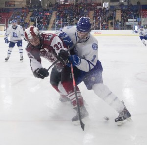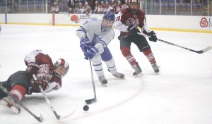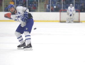 The Blue Devils (14-5-1) broke through on their next power play opportunity, and it was their leading scorer who put them on the board. Rancourt knocked in a rebound in the slot at 3:52 of the second period to give Lewiston a 1-0 lead.
