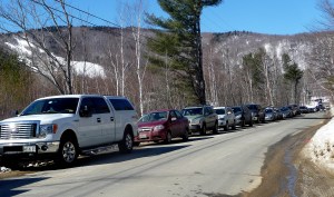 Parking lots were so full that vehicles were parked along one side of the access road and along both sides of Isthmus Road.