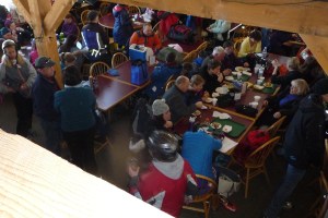 The lodge was packed with people eating lunch while volunteers hawked merchandise and the Marley Beverage Co. gave out free samples of its drinks in the lodge lobby.