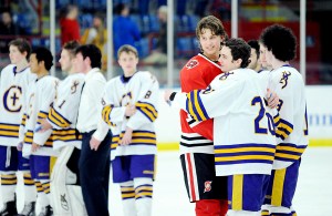 The Stags (13-6-2) made it a game, scoring two unanswered to close the second period. Less than a minute after coming out of the box for the second time, Hannigan sniped a shot from the left circle that deflected off the near post and past Scarborough goaltender Ben Bragg to make it 3-1.