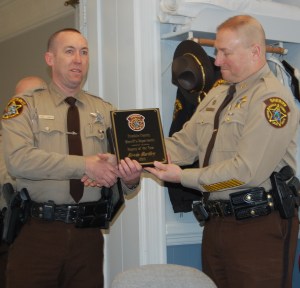 FARMINGTON — A Franklin County deputy was recognized twice Tuesday, first as Deputy of the Quarter and second as Deputy of the Year.